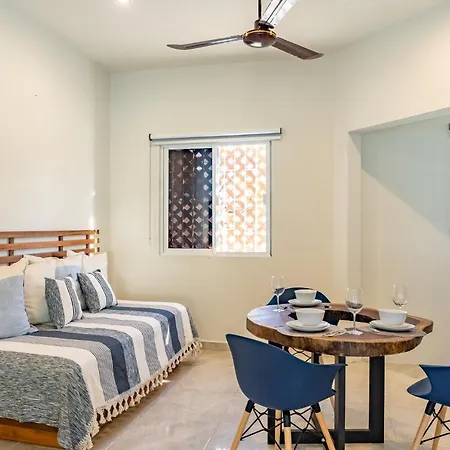 Este apartamento se sitúa a unos 15 minutos a pie del centro de Tulum. Este alojamiento está situado extremadamente cerca de la Laguna de Kaan Luum y el aeropuerto Nacional de Playa del Carmen, a 51 minutos en coche.